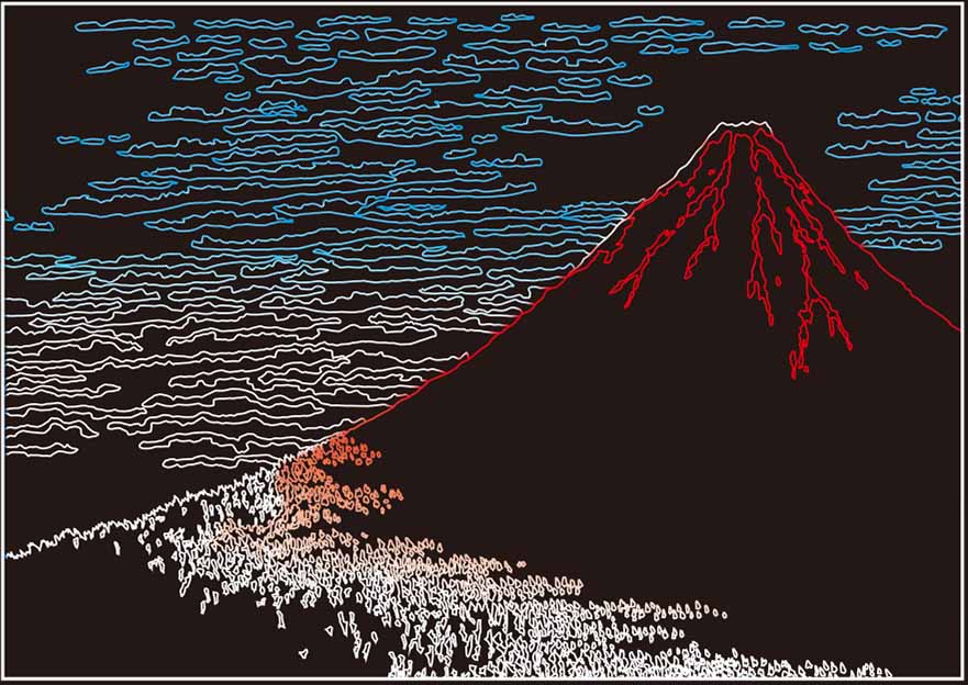 絵柄は人気のある葛飾北斎の『冨嶽三十六景』や歌川広重の『東海道五十三次』、東洲斎写楽、歌川国芳、喜多川歌麿など、誰もが一度は見たことのある浮世絵を集めました。